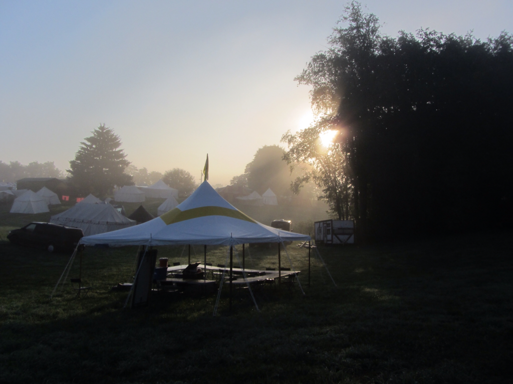 The first full day of Pennsic 41 dawned clear and beautiful. The ground had firmed up over night and we began setting up tents.